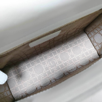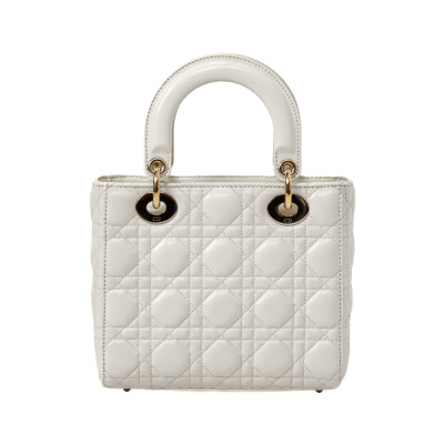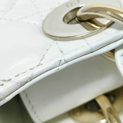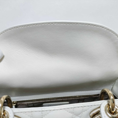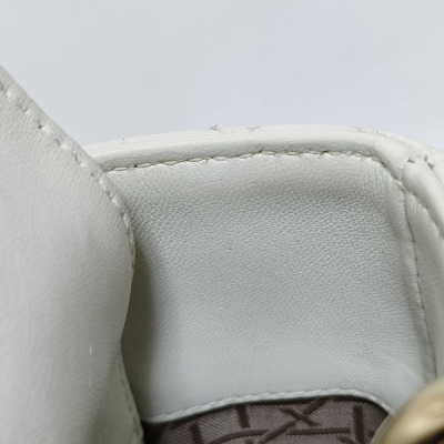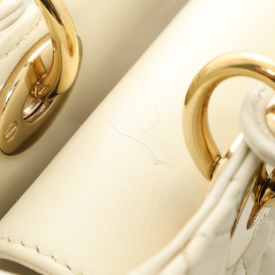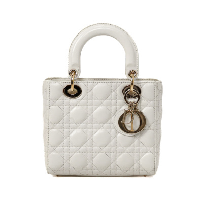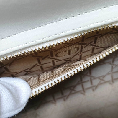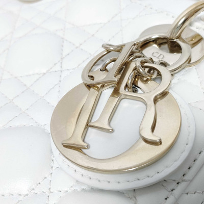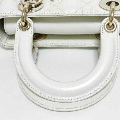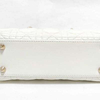 Christian Dior My Lady ABCDior in ivory Cannage quilted leather (circa: 2019). Featuring light gold-toned hardware, leather top handles, 'DIOR' charms at front, and a detachable shoulder strap. The top flap opens to a light brown Cannage fabric interior with a patch pocket and a zip pocket. Approx dimensions: 20cm(L) x 17cm(H) x 8cm(D), 8.5cm handle drop and 50cm adjustable strap drop. Includes MyABC charms: heart, C, D and Y. Accompanied by Christian Dior box. With Entrupy Certificate of Authenticity.