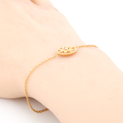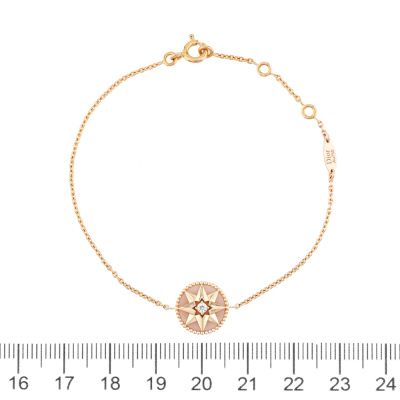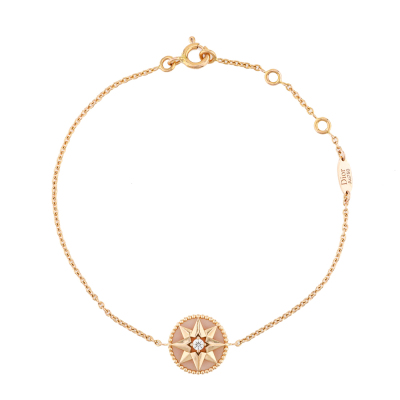 Christian Dior Rose Des Vents bracelet with Pink Opal and a round Natural Diamond of 0.04ct. Motif diameter: 11.8mm. 18ct rose gold. Adjustable length: 15cm - 16.5cm - max 18cm. Weight: 2.5g. (Pre-owned)