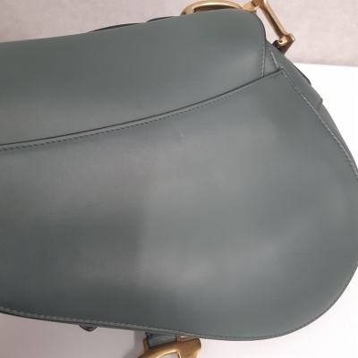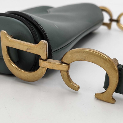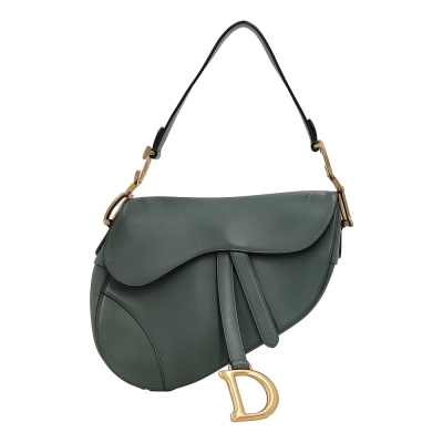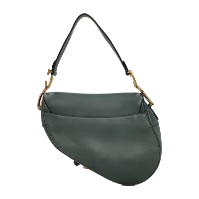 Christian Dior Saddle bag in green smooth calfskin and with black leather trims. Featuring an exterior pocket at back, aged gold-toned hardware, CD signature on the strap, flap with magnetic closure on front. This opens to tonal suede-like lining interior with a zipped pocket. Approximate dimensions: 26.5cm(Top-L) x 20.5cm(H) x 6.5cm(D), 16.5cm handle drop. With Entrupy Certificate of Authenticity. (Pre-owned)