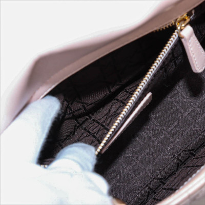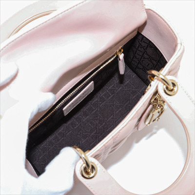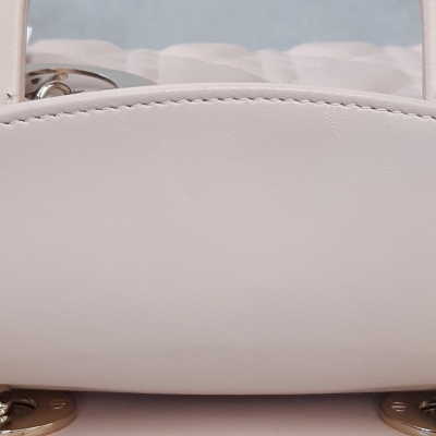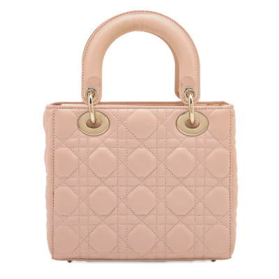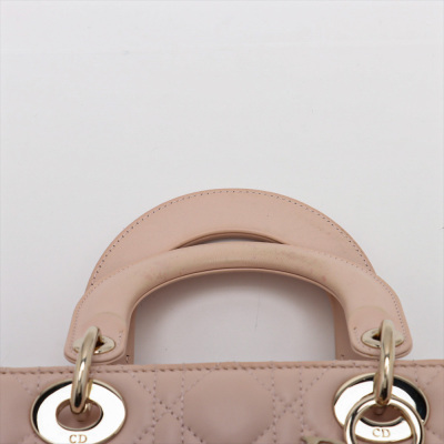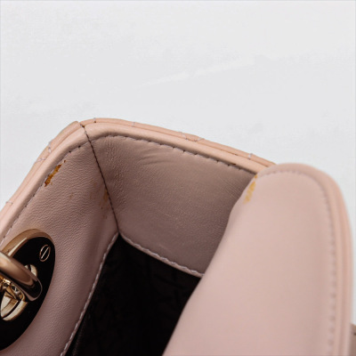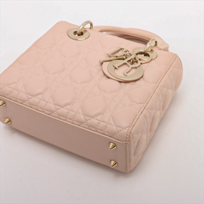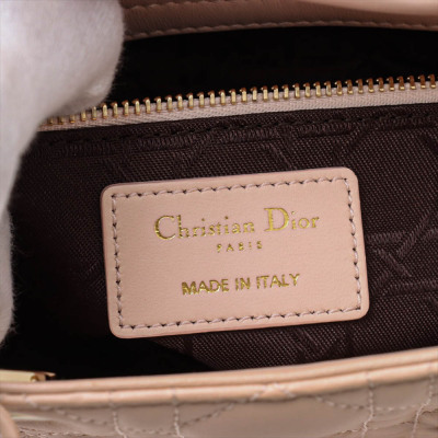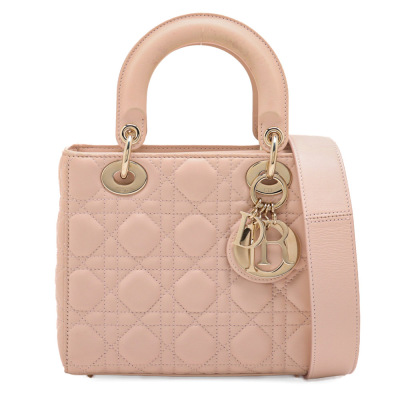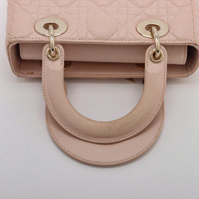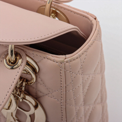 Christian Dior small My Lady ABCDior bag in light pink lambskin leather with Cannage stitching. Featuring light gold-tone hardware, including Dior letter charms. The leather flap top opens to a brown textile-lined interior with a patch pocket and a zip pocket. Approximate dimensions: 20cm(L) x 18cm(H) x 8cm(D), 8cm handle drop, 44cm strap drop with charms. Accompanied by Dior authentication card (dated 06/2019) and information booklet. With Entrupy Certificate of Authenticity. (Pre-owned)