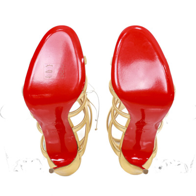 Christian Louboutin Amazoulo 100 Nappa. Size EU40.5. Colour code: GD21. Colour: Gold. Heel Height: 100mm. Material: Nappa Laminata. Made in Italy. With Christian Louboutin box. With 2 Christian Louboutin protective bag. With additional heel caps. (Pre-owned)*