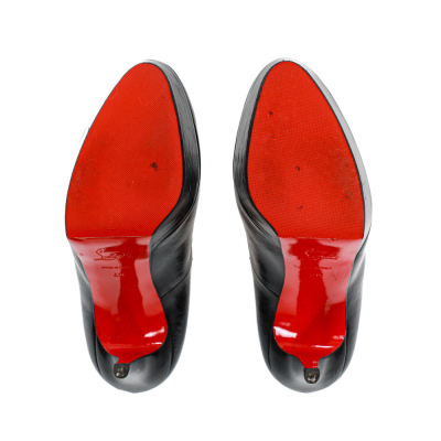 Christian Louboutin Bianca 140 KID. Size EU40. Colour code: BK01. Colour: Black. Heel Height: 140mm. Material: Patent calf leather. Made in Italy. Aftermarket red sole protector added, condition underneath unknown. With Christian Louboutin box. With 2 Christian Louboutin protective bag. With additional heel caps. (Pre-owned)*
