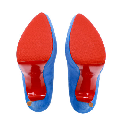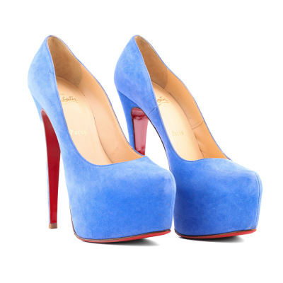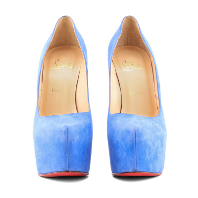 Christian Louboutin Daffodile 160. Size EU40. Colour: Blue. Heel Height: 160mm. Material: Suede. Made in Italy. Aftermarket red sole protector added, condition underneath unknown. With 2 Christian Louboutin protective bag. (Pre-owned)*