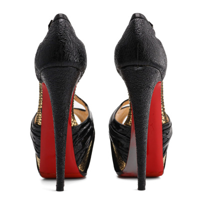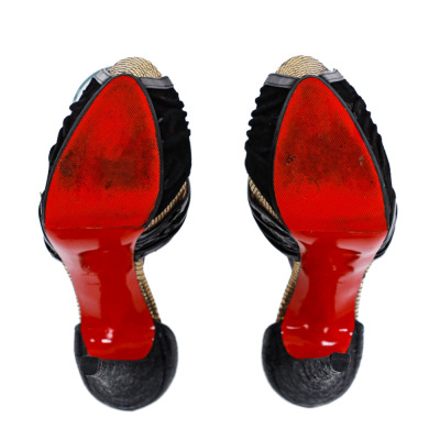 Christian Louboutin Divinoche 160 KID. Size EU39. Colour: Black/Gold. Heel Height: 160mm. Material: Leather. Made in Italy. Aftermarket red sole protector added, condition underneath unknown. With 2 Christian Louboutin protective bag. (Pre-owned)*