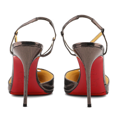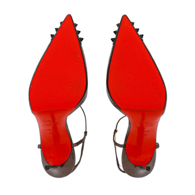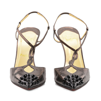 Christian Louboutin Geotistrap 100 Facette Laminata/Patent T. Size EU39.5. Colour code: CM8P. Colour: Anthracite/Black. Heel Height: 100mm. Material: Leather. Made in Italy. Aftermarket red sole protector added, condition underneath unknown. With Christian Louboutin box. With Christian Louboutin protective bag. (Pre-owned)*