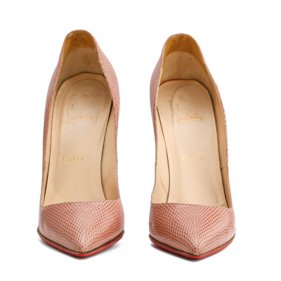 Christian Louboutin Pigalle 120 Lizard. Size EU39. Colour Code: PK6N. Colour: Pink. Heel Height: 120mm. Material: Lizard. Made in Italy. Aftermarket red sole protector added, condition underneath unknown. With Christian Louboutin box. With Christian Louboutin protective bag. With additional heel caps. (Pre-owned)*