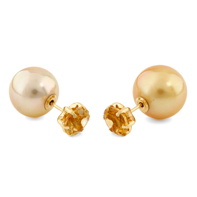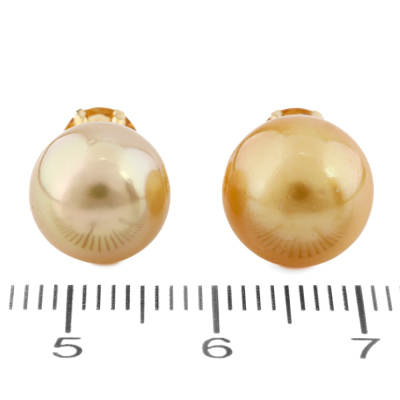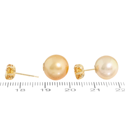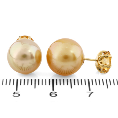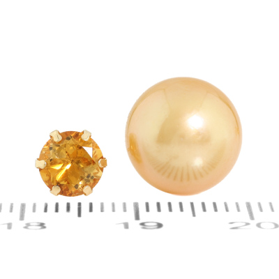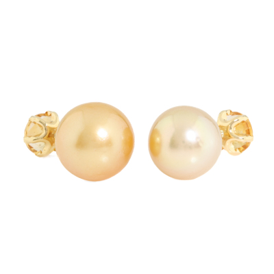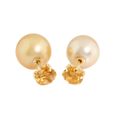 Citrine and Pearl earrings with round Natural Citrine totalling 1.00ct and Golden South Sea Pearl of 10mm & 10.7mm as earring backs. 18ct yellow gold. Weight: 3.7g. (Pre-owned)