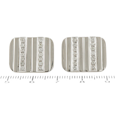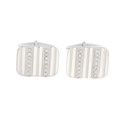 Diamond cufflinks with round Natural Diamonds totalling approximately 0.56ct (Estimated grading: HIJ SI). 18ct white gold. Size: 1.9cm x 1.5cm. Weight: 11.2g. With Maker's mark - Roy King. (Pre-owned)