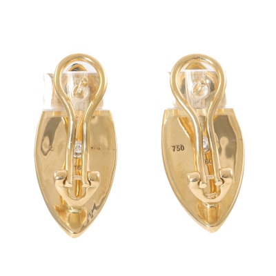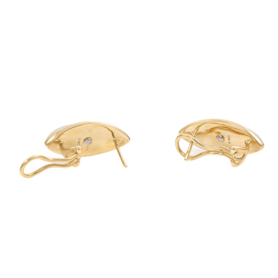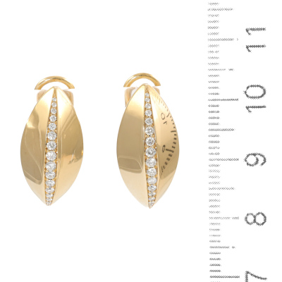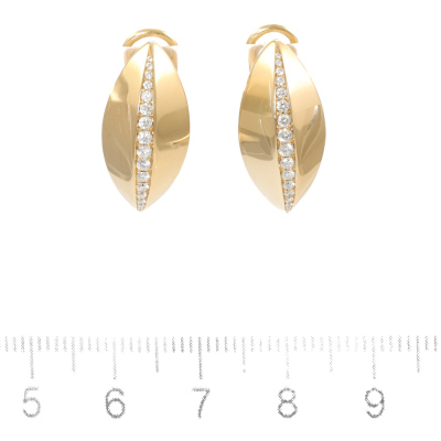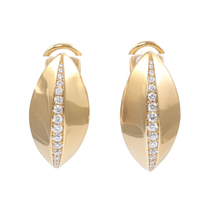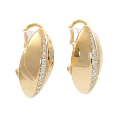 Diamond Dome design clipped-on earrings (for pieced ears) with round Natural Diamonds (including two round Natural Diamonds at the back) totalling 0.36ct (Estimated grading: G-H VS). 18ct yellow gold. Earring size: 2.2cm x 1.05cm. Weight: 10.7g. (Pre-owned)