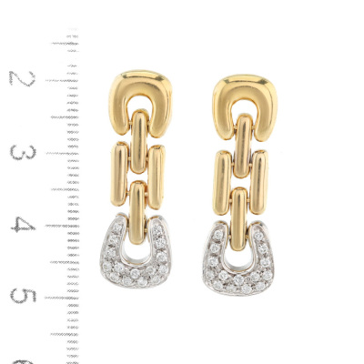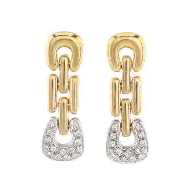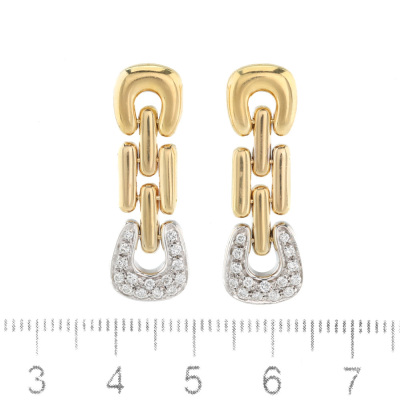 Diamond drop earrings with round Natural Diamonds totalling approximately 0.30ct (Estimated grading: G-H VS-SI). 18ct yellow and white gold with 18ct yellow gold backs. Weight: 9.4g. (Pre-owned)