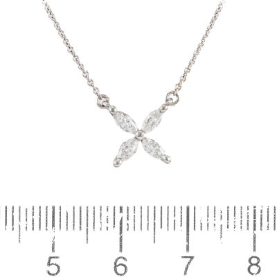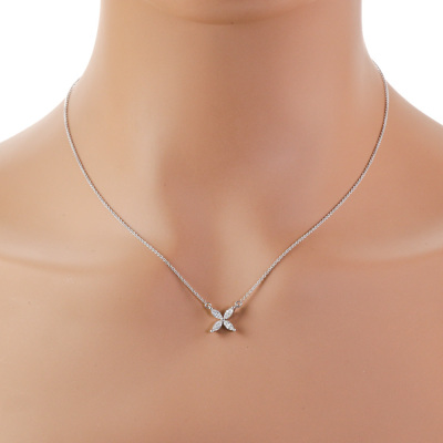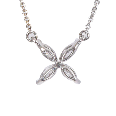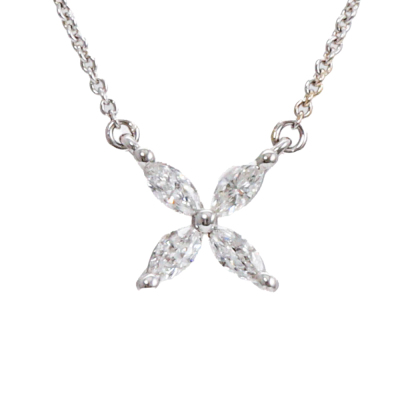 Flower design pendant with 4 marquise cut Natural Diamonds totalling 0.28ct. 14ct white gold with 46cm 18ct white gold attached chain. Weight: 3.3g. (Pre-owned).