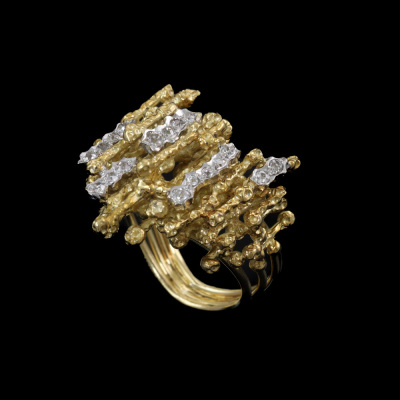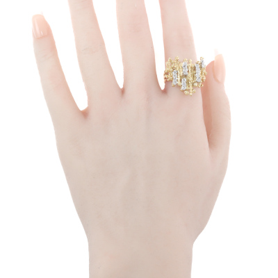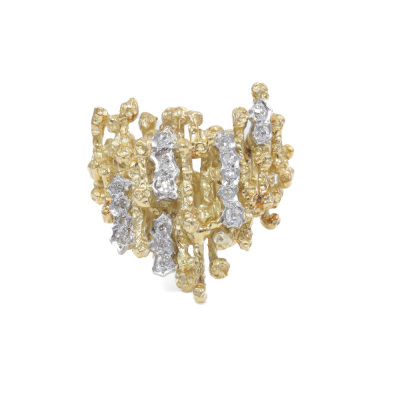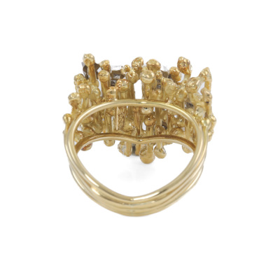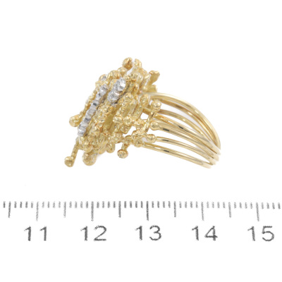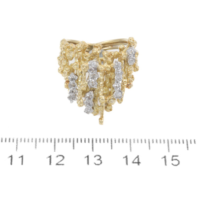 Diamond dress ring with old cut Natural Diamonds totalling approximately 0.24ct. 18ct yellow and white gold. Ring size M1//2 - ring resizing is not recommended. Minimum band width: 3.8mm. Weight: 12.2g. (Pre-owned)