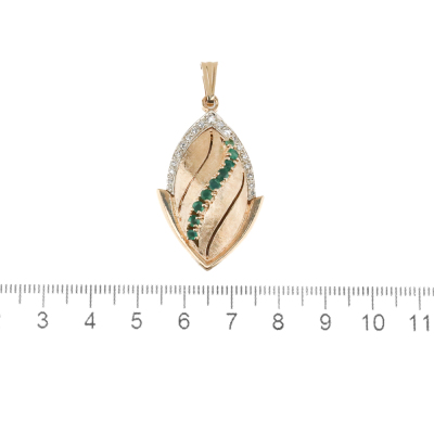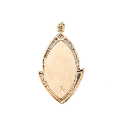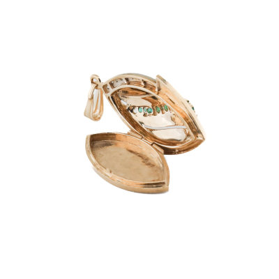 Diamond locket pendant with round Natural Diamonds totalling approximately 0.27ct and gripoix green glass stones. 14ct yellow gold. No chain provided. Weight: 14.3g. (Pre-owned)