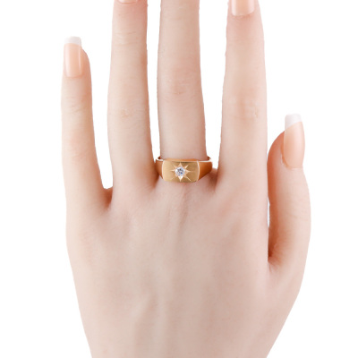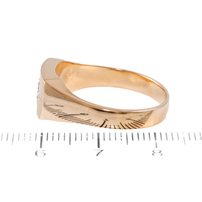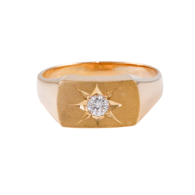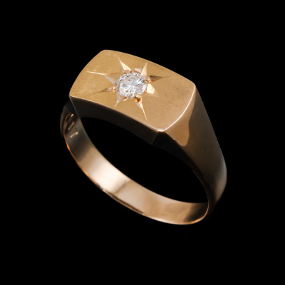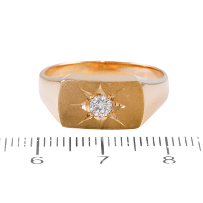 Mens ring with a round Natural Diamond of 0.17ct. 18ct yellow gold. Band width: 3.5mm -4.2mm