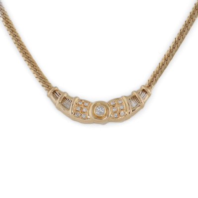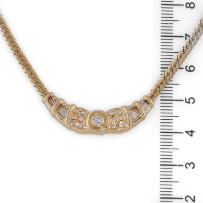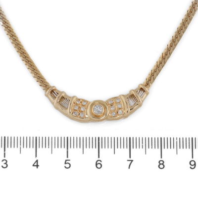 Diamond necklace with round Natural Diamonds totalling 0.26ct. 18ct yellow gold and Platinum - 900. Length: 43cm. Weight: 13.8g.