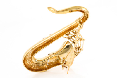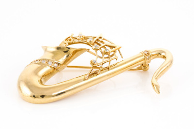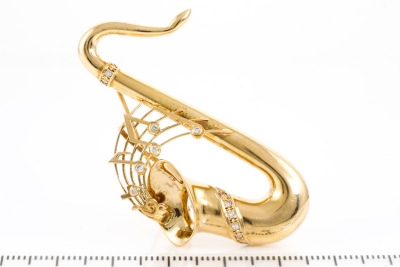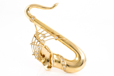 Diamond Saxophone Brooch 18ct Gold 13.6g*