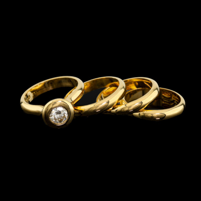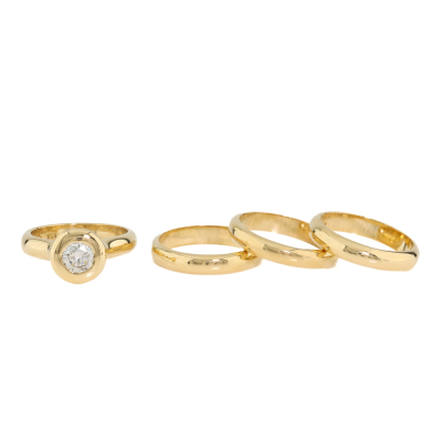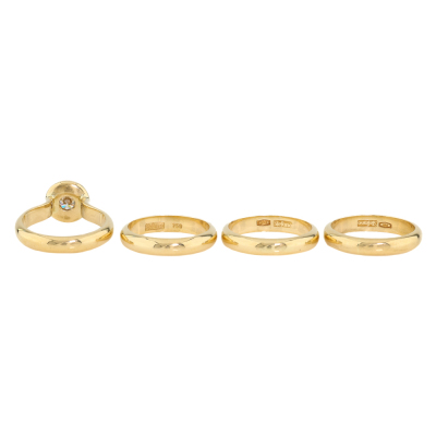 Diamond Solitaire Ring & 3 Band Rings Set 18ct Gold 17.9g