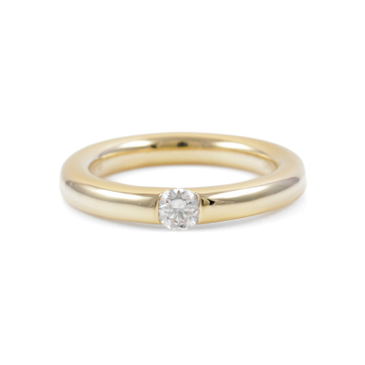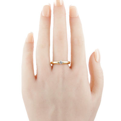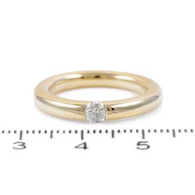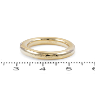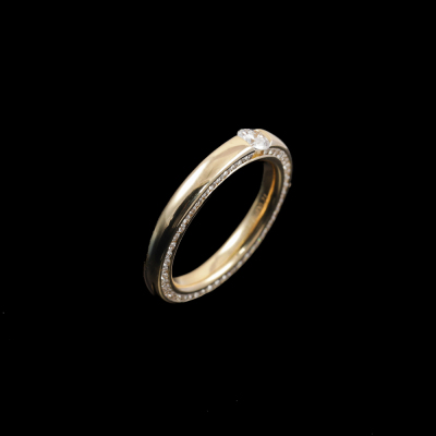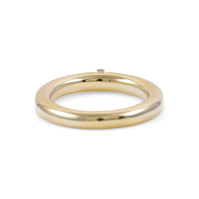 Diamond wedding band ring with a top centre single round Natural Diamond of 0.21ct and round Natural Diamonds on the band side totalling 0.33ct (Estimated grading: H-I SI). 18ct yellow gold. Ring size K3/4. Band width: 2.9mm - 3.0mm. Weight: 6.3g. (Pre-owned)
