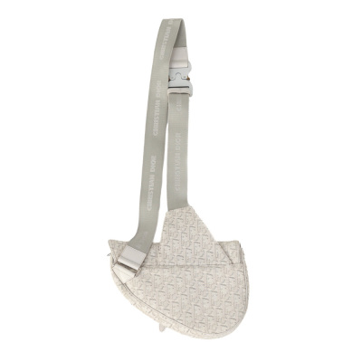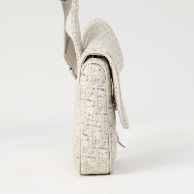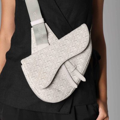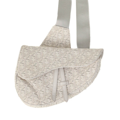 Dior Saddle Bag in beige and white jacquard Dior Oblique motif canvas with white leather trims. Featuring white & silver-toned hardware, front flap with magnetic button and inner zipper closures open to a black textile interior compartment. Approx dimensions: 27cm(Top-L) x 20cm(H) x 6cm(D), adjustable strap with CD signature aluminium buckle length: 80-106cm. With purchase receipt and info booklet from Dior. (Pre-owned)