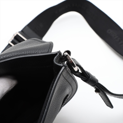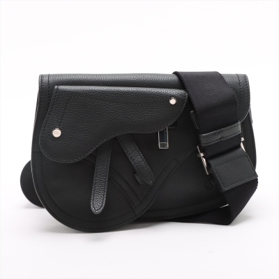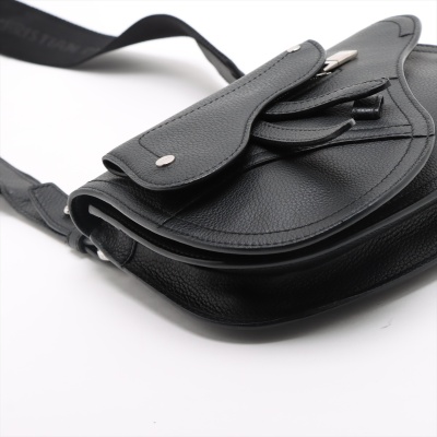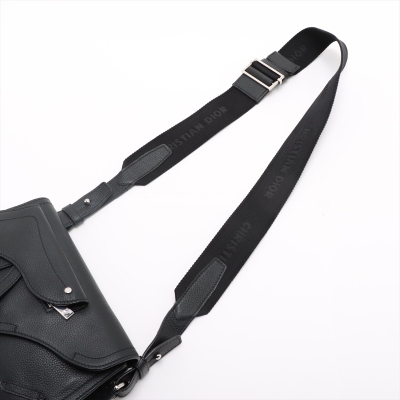 Dior Saddle messenger bag in black grainy calfskin leather (year 2019). Featuring silver-toned hardware, a zipper pocket with mini saddle flap. The main magnetic saddle flap opens to a main compartment lined with black textile. Approximate dimensions: 24cm(W) x 14cm(H) x 3cm(D), body wrist length: 37-52cm, adjustable. With Entrupy Certificate of Authenticity. (Pre-owned)