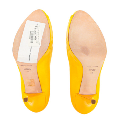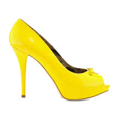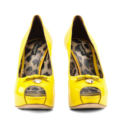 Dolce & Gabbana Peeptoe Bow/Heart 120 Patent. Size EU40. Colour: Yellow. Heel Height: 120mm. Material: Patent leather. Made in Italy. With Dolce & Gabbana box. With 2 Dolce & Gabbana protective bag. (Pre-owned)*