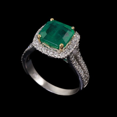 Emerald 2.41ct & Diamond 18ct Gold Ring