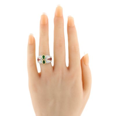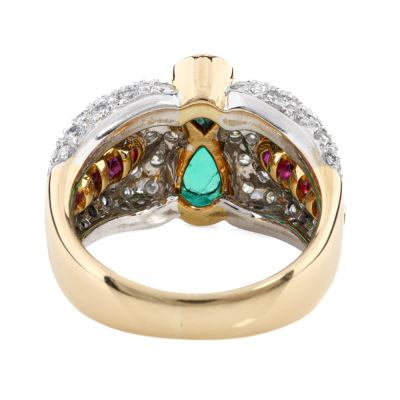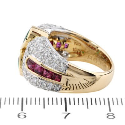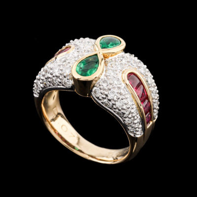 Emerald, Ruby & Diamond 18ct Gold Ring