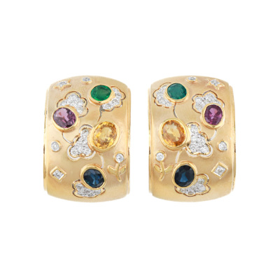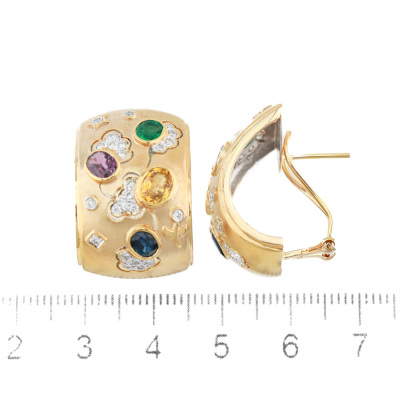 Emerald, Sapphire, Ruby and Diamond Earrings