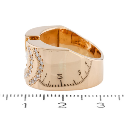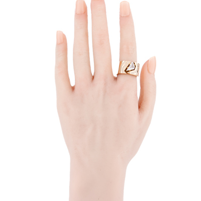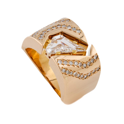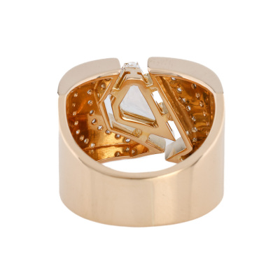 Diamond ring with fancy cut & round Natural Diamonds totalling 0.61ct (Estimated grading: centre Diamond H VS & round Diamond H P1-P2). 18ct rose gold. Ring size M1/2. Band width: 7.1mm - 8.5mm. Weight: 13.2g. (Pre-owned)