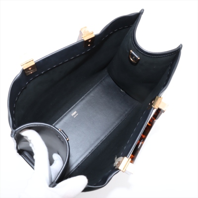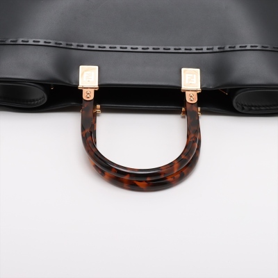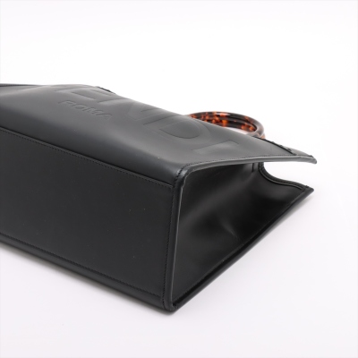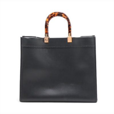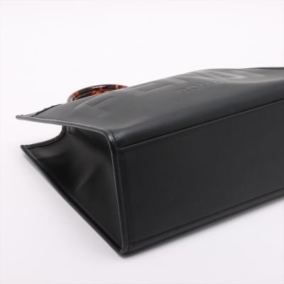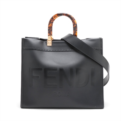 Fendi medium Sunshine bag in black smooth calfskin leather. Featuring gold-toned hardware, embossed Fendi logo at front, dual tortoiseshell top handles, and a detachable wide shoulder strap. The open top reveals to a black microfibre interior. Approximate dimensions: 36cm(L) x 31cm(H) x 15cm(D), handle drop 11cm, strap drop 40cm. With Entrupy Certificate of Authenticity. (Pre-owned)