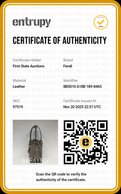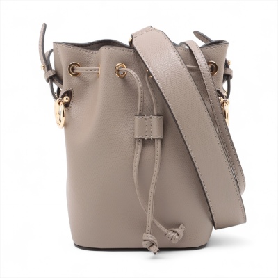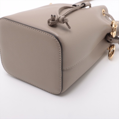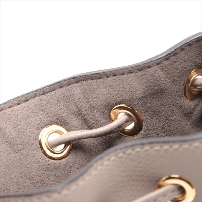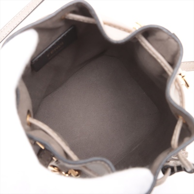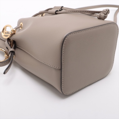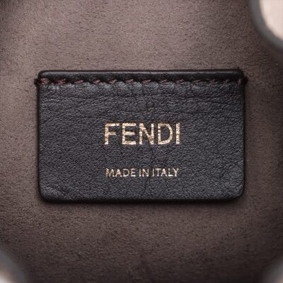 Fendi Mon Tresor bucket bag in beige grainy calfskin leather, with black leather trim. Featuring gold-toned hardware, detachable leather top handle and shoulder strap. The drawstring closure opens to a tonal suede interior. Approximate dimensions: 12cm(L) x 18cm(H) x 10cm(D), handle drop 10cm, shoulder strap drop 58cm. Accompanied by Fendi dustbag. With Entrupy Certificate of Authenticity. (Pre-owned)