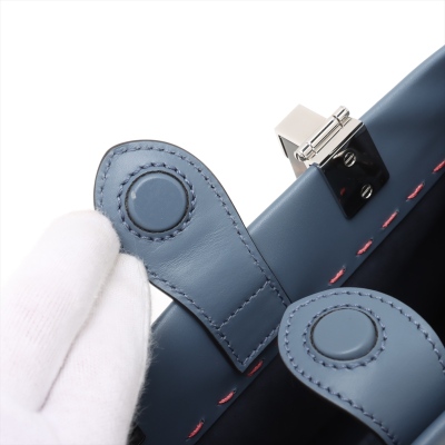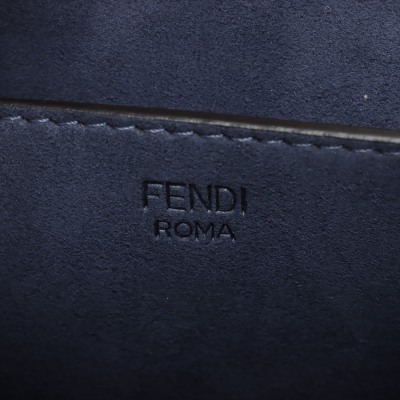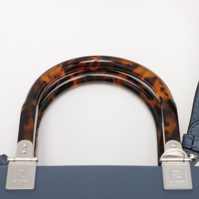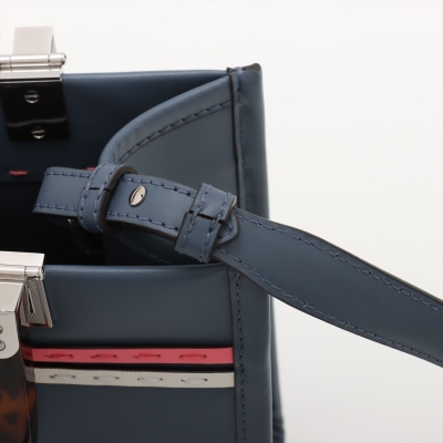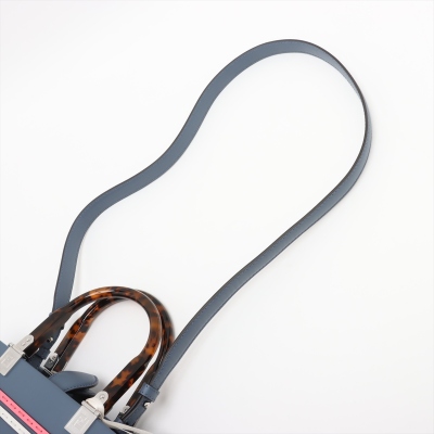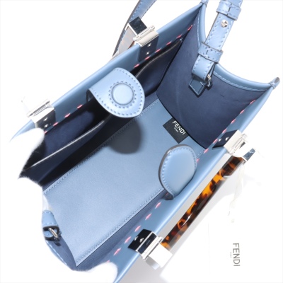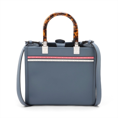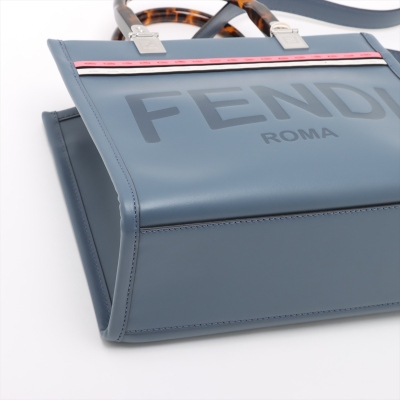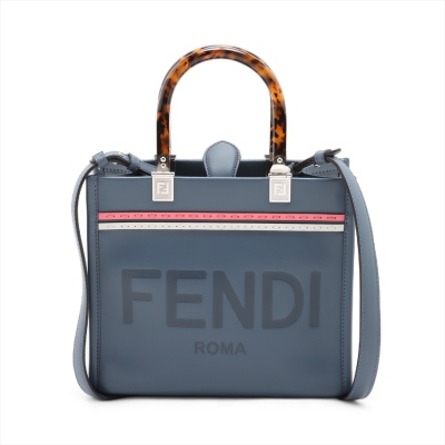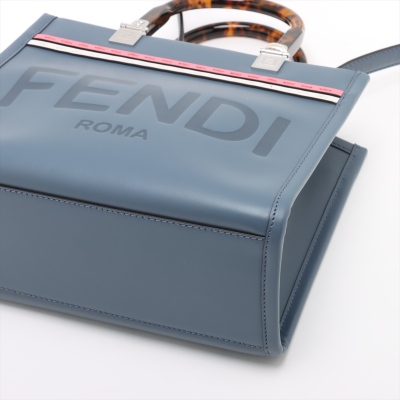 Fendi small Sunshine handbag in blue smooth calfskin leather. Featuring silver-toned hardware, an embossed Fendi logo at front, dual tortoiseshell top handles, a detachable shoulder strap. The top with magnetic button opens to a tonal microfibre interior with leather bottom. Approximate dimensions: 26cm(L) x 21cm(H) x 12cm(D), handle drop 11cm, strap drop 50cm. Accompanied by Fendi dustbag. With Entrupy Certificate of Authenticity. (Pre-owned)