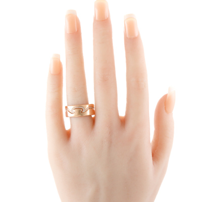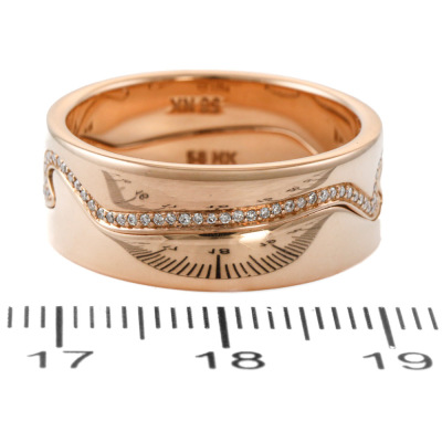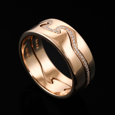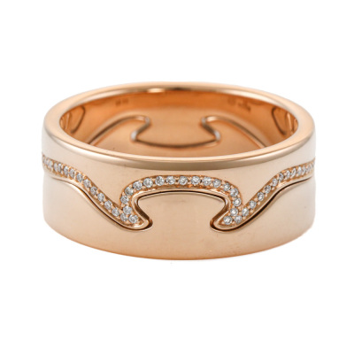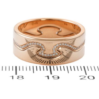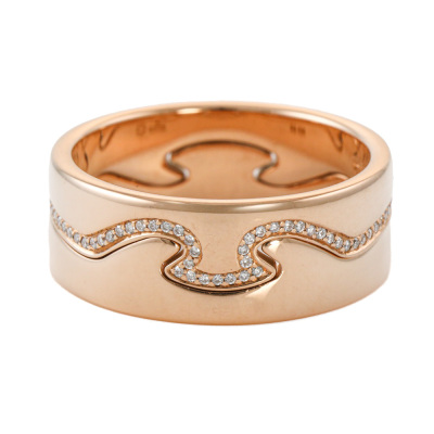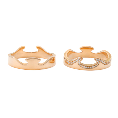 George Jensen Fusion 2pcs ring set. 1) Fusion End ring with round Natural Diamonds totalling approximately 0.18ct. 2) Matching interlocking Fusion End ring. Both 18ct rose gold. Both George Jensen stamped size 58, Measures as Australian Size R1/2 - ring resizing is not is not recommended. Total interlocking band width: 8.3mm. Total weight: 12.2g.