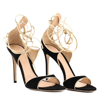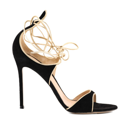 Gianvito Rossi High Heel 100 Suede. Size EU40. Colour: Black/Gold. Heel Height: 100mm. Material: Suede. Made in Italy. With Gianvito Rossi box. With 2 Gianvito Rossi protective bag. With additional heel caps. (Pre-owned)*