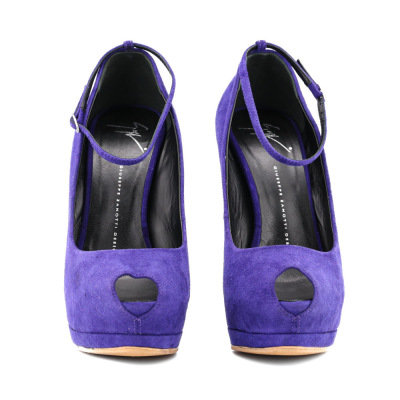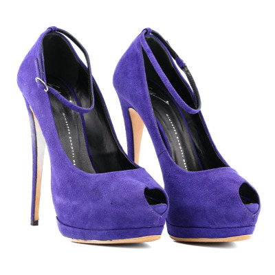 Giuseppe Zanotti Peeptoe 160 Suede. Size EU40. Colour: Purple. Heel Height: 160mm. Material: Suede. Made in Italy. Aftermarket sole protector added, condition underneath unknown. (Pre-owned)*