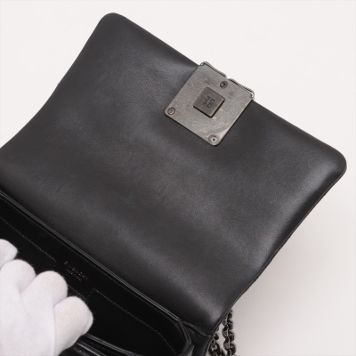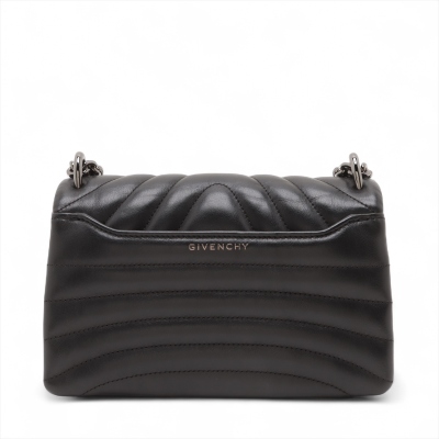 Givenchy 4G Quilted Shoulder bag in black calfskin leather. Featuring shiny black-toned hardware, exterior rear patch pocket, and sliding chain shoulder strap. The magnetic closure with 4G logo on front flap opens to a black leather interior with a patch pocket. Approximate dimensions: 21cm(L) x 13cm(H) x 9cm(D), strap drop 57cm. Accompanied by Givenchy dustbag. With Entrupy Certificate of Authenticity. (Pre-owned)