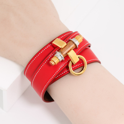 Givenchy Obsedia 3 Row Leather Red Cuff