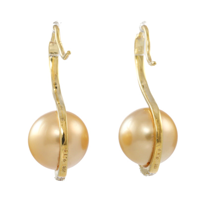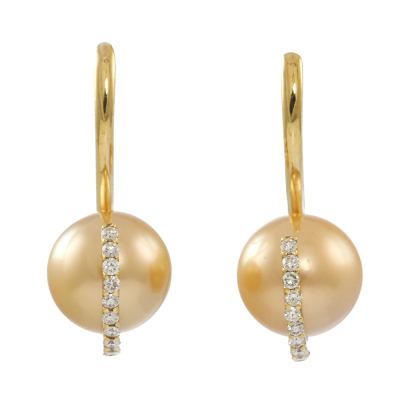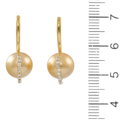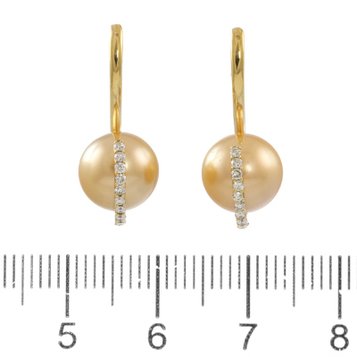Golden South Sea Pearl 9.5mm & Diamond Earrings