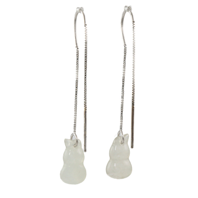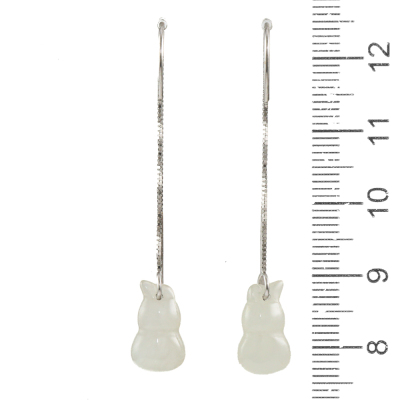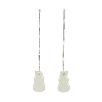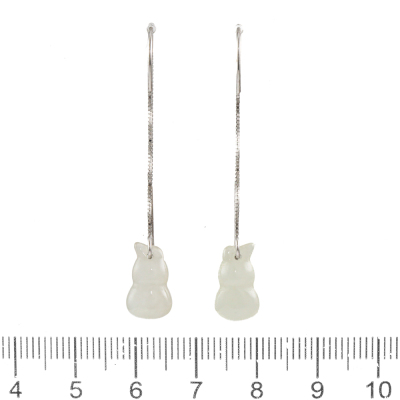 Drop earrings with 2 Gourd carved Natural semi-transparent white Jadeite Jade -Type A of size 12.6 x 7.6mm. 18ct white gold. Weight: 2.3g. (Pre-owned)