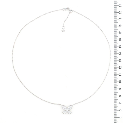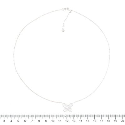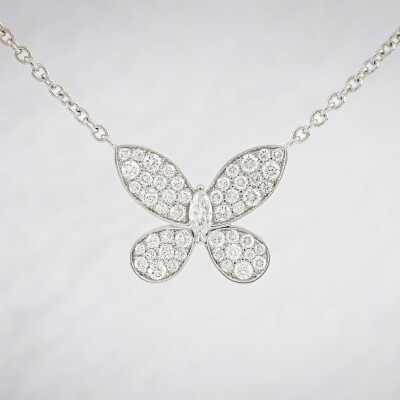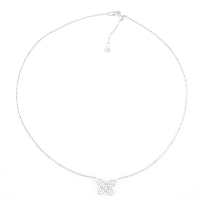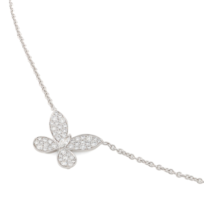 Graff Butterfly Silhouette Diamond necklace with pave set round Natural Diamonds totalling approx. 0.55ct (Estimated grading: F-G VS). 18ct white gold with Graff 18ct white gold attached chain. Adjustable max length: 45.5cm. Weight: 6.6g. With Graff Certificate dated: 13/11/2024. and Graff box. (Pre-owned)