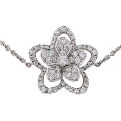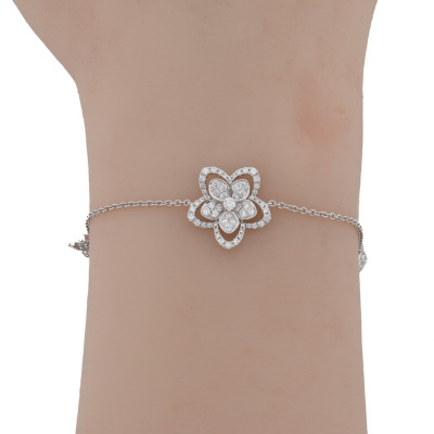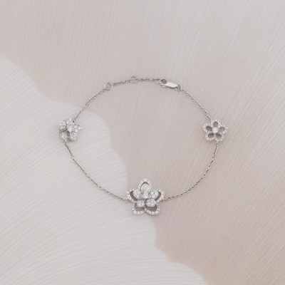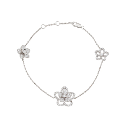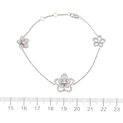 Graff Wild Flower Diamond Bracelet with round Natural Diamonds totalling 0.99ct (Estimated grading: G VS). Motif diameter: 15.5mm & 10.2mm. 18ct white gold. Adjustable length: 16.5cm - 17.5cm - 18.5cm. Weight: 5.8g. With Graff box. With Certificate #1982913943453252.