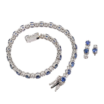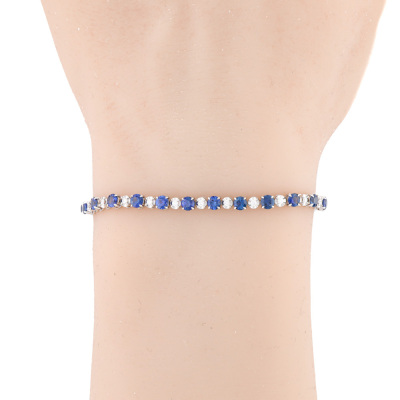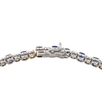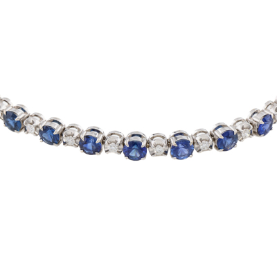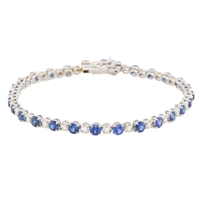 Gregory Sapphire and Diamond bracelet with round Natural blue Sapphire totalling approximately 4.50cts and round Natural Diamonds totalling approximately 0.50cts. 18ct white gold. Length: 16cm, plus 3 extra links supplied (including extra links). Weight: 7.8g. With Gregory Box.