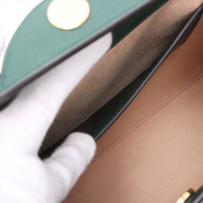 Gucci small Bamboo Diana bag in green calfskin. Featuring gold-toned hardware, bamboo handles with pink decorative belts, detachable leather shoulder strap & GG logo at front. The magnetic button closure opens to a beige microfibre interior with a patch pocket. Approx dimensions: 27cm(L) x 23cm(H) x 11cm(D), handle drop 8.5cm, shoulder strap drop 55cm, adjustable. Accompanied by a web strap, spare link, Gucci dustbag. With Entrupy Certificate of Authenticity.(Pre-owned)