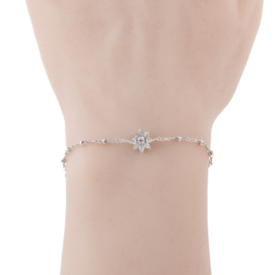 Gucci Flora Chain Bracelet with round Natural Diamonds totalling 0.16ct. Reversible Motif diameter: 9mm. 18ct white gold. Adjustable max length: 19cm. Made in Italy. Weight: 3.0g. (Pre-owned)