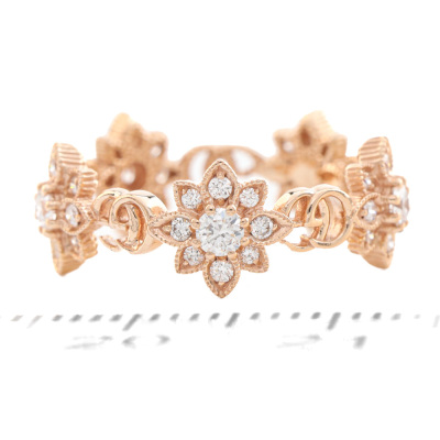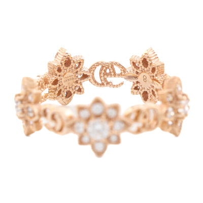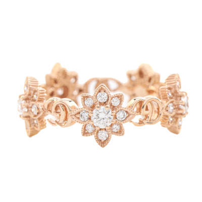 Gucci Flora diamond Ring with round Diamonds totalling 0.50ct. 18ct rose gold. Made in Italy. Gucci stamped size 8, measures as Australian size: I - ring resizing is not recommended. Weight: 2.8g. (Pre-owned)