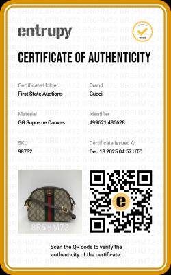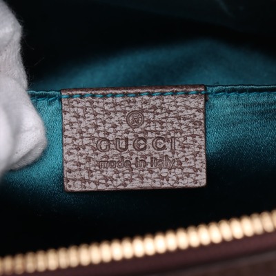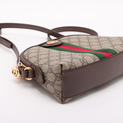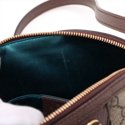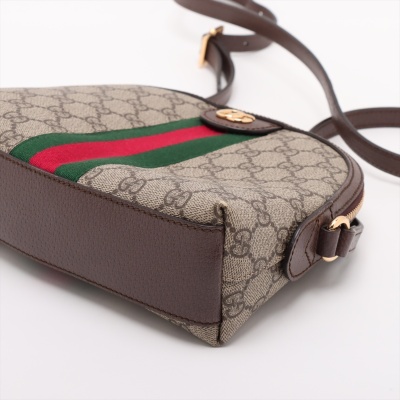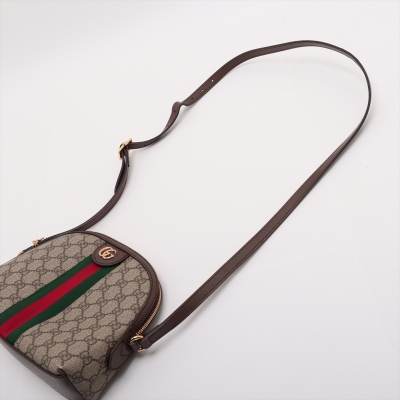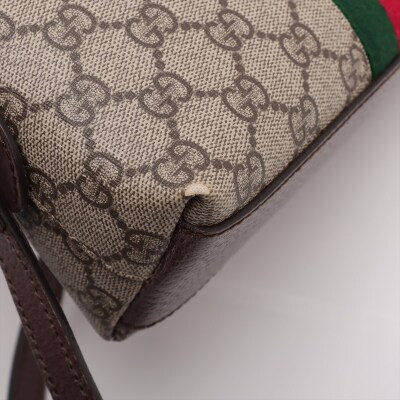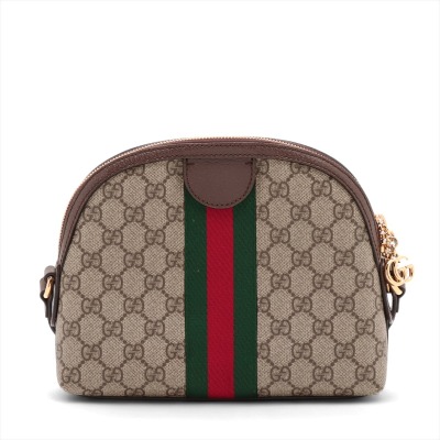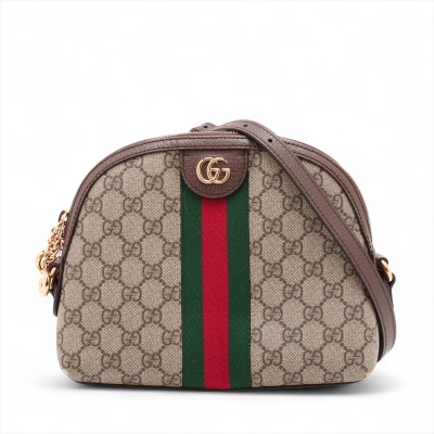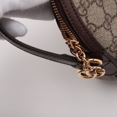 Gucci GG Ophidia shoulder bag in beige GG Supreme canvas. Featuring gold-toned hardware, brown leather trim, GG logo at front and zipper closure with GG logo charms. This opens to a blue satin-like lining interior with a slip pocket and patch pockets. Approximate dimensions: 22.5cm(L) x 18cm(H) x 7.5cm(D), adjustable strap drop 51.5cm. Accompanied by a Gucci dust bag. With Entrupy Certificate of Authenticity. (Pre-owned)