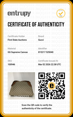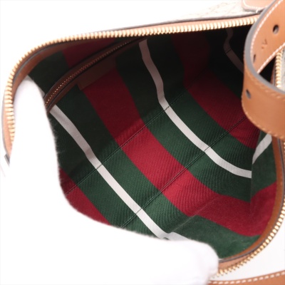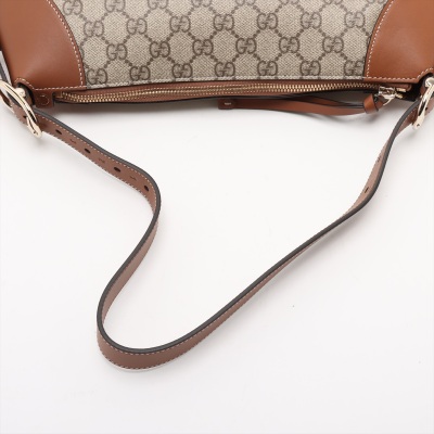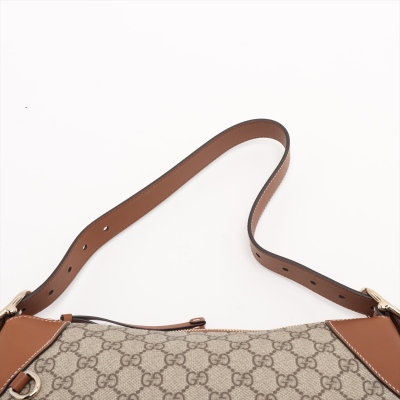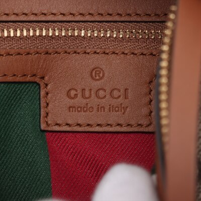 Gucci medium Emblem bag in GG Supreme coated canvas and brown leather. Featuring champagne gold-toned hardware, a D-ring in front, a detachable strap and zippered top. This opens to web stripe textile lined interior in white, green and red, with a zippered pocket. Approximate dimensions: 36cm(Base-W) x 24cm(H) x 18cm(D), with 22cm strap drop, adjustable. Accompanied by a Gucci info care cards and dust bag. With Entrupy Certificate of Authenticity.