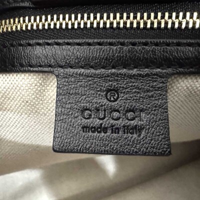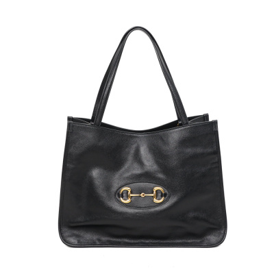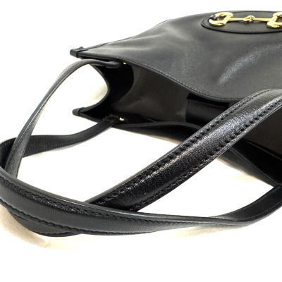 Gucci Horsebit 1955 tote in black leather. Featuring gold-toned hardware, Horsebit hardware detail at front, and dual tall leather handles. The open top with magnetic button opens to a beige textile interior with a zip and patch pocket. Approximate dimensions: 38cm(W) x 28cm(H) x 12.5cm(D), with a 23cm strap drop. With Entrupy Certificate of Authenticity.