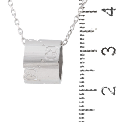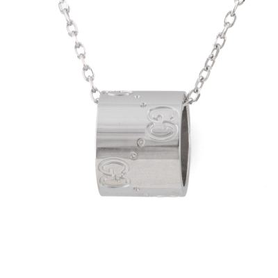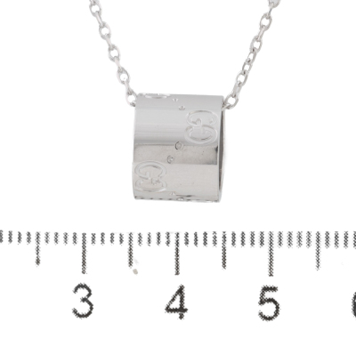 Gucci Icon necklace. Motif size: 11.5mm x 9mm. 18ct white gold with 18ct white gold Gucci 38cm - 40cm chain. Made in Italy. Weight: 7.2g.