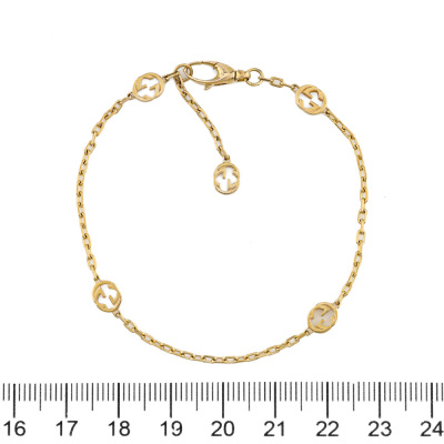 Gucci Interlocking bracelet with iconic double G motifs. 18ct yellow gold. GG charm size: 7.2mm - 5.2mm. Length: 20.5cm. Wrist size: 18cm. Weight: 4.1g